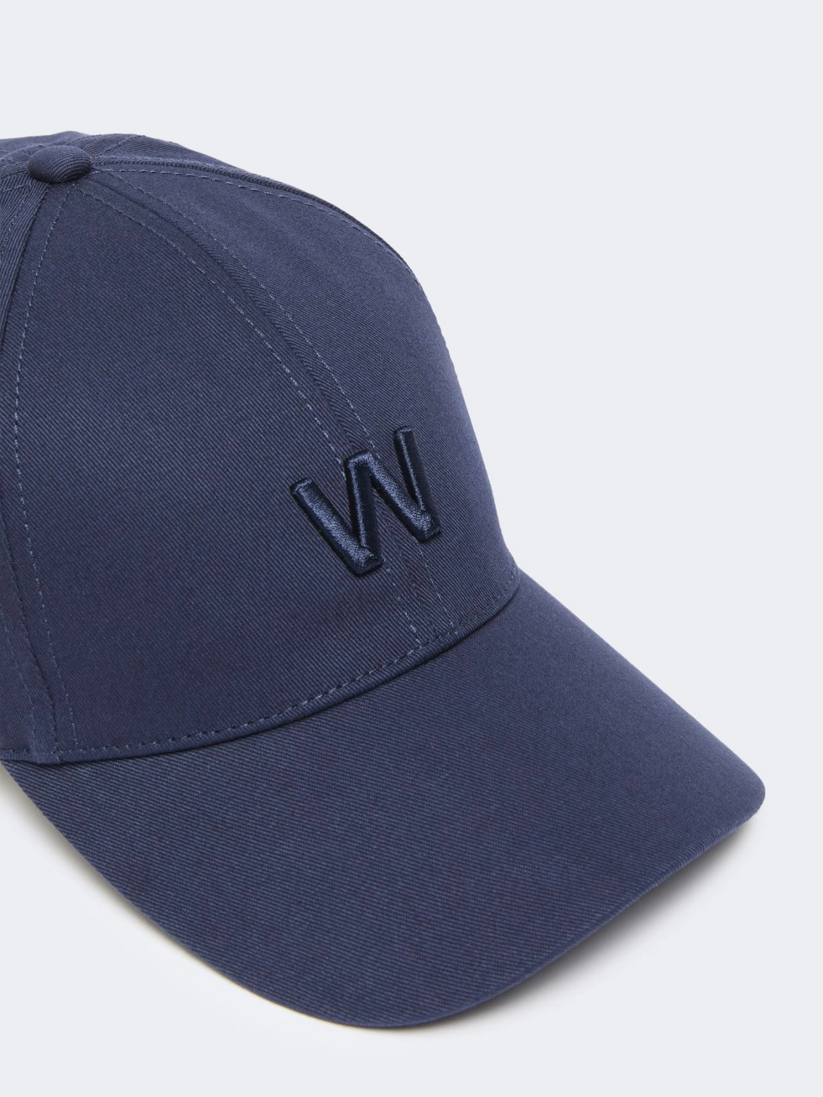 Baseball cap with semi-rigid visor, customised with W logo embroidered on the front.